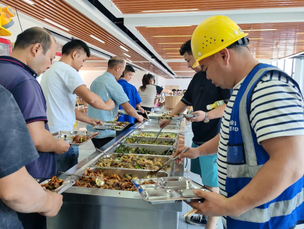 除此之外,秦棋村的村民也在村里的组织协调下,在园区成立一个物流园大食堂——秦棋食府,围绕家门口的物流搞起配套服务,专门解决物流园区数千员工吃饭的问题。