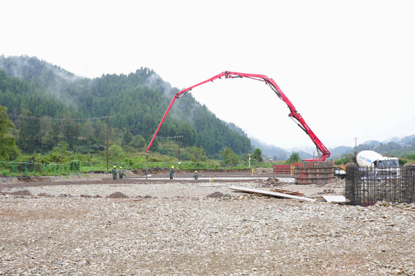 走进佛黔协作水产养殖基地改扩建项目建设现场,一派热火朝天的施工景象扑面而来。工人们冒雨作业,分段推进基础浇筑施工。混凝土输送泵正将混凝土持续注入水泥池基坑,工人们同步使用混凝土振捣设备,对浇筑后的混凝土表面进行整平作业,确保池体结构密实、平整、稳固。
