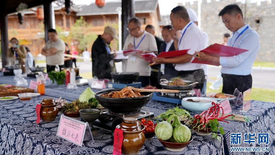 评委点评酸汤创意菜品。新华网 周远钢 摄