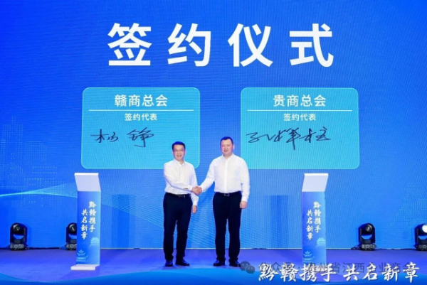 会议现场赣商总会与贵商总会签署了战略合作协议,双方将在产业对接、资源共享、企业服务等方面开展深度合作。中国邮政储蓄银行贵阳分行与贵州省江西企业商会签署授信协议,为赣商在黔发展提供金融支持。