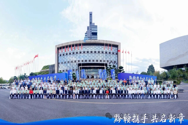犹𬎆在致辞中介绍江西产业发展现状,江西正着力培育电子信息、新能源、新材料等战略性新兴产业,推动传统产业转型升级,将推进深化赣黔合作,推动产业优势互补,聚焦新兴产业领域协同发展;促进资源要素高效流动,实现市场与资源的优化配置;建立长效合作机制,确保合作项目落地见效。