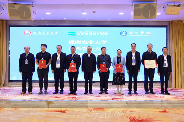 10月18日,由武陵山、罗霄山和湘赣边区乡村振兴科教联盟、湖南农业大学主办,铜仁学院承办的武陵山、罗霄山和湘赣边区乡村振兴科教联盟第四届专家论坛暨典型案例交流会在铜仁举行。来自湖南、湖北、江西、贵州和重庆五省市高校和科研院所的领导嘉宾、专家学者围绕“数字赋能·科教融汇:因地制宜发展农业新质生产力”主题,分享各自领域的最新研究成果,并就如何将这些成果转化为实际生产力,促进农业现代化和农村经济发展提出了建设性意见。