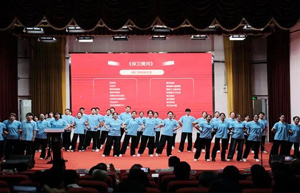 在教学展示阶段,唐建荣教授带领“百年党史·一路红歌”音乐党史课展演团队以《大刀进行曲》《团结就是力量》《保卫黄河》等经典曲目为主线,激情呈现了贵州省思政金课的风采。铜仁学院马克思主义理论专业硕士研究生参与了课程展示活动,演唱了抗战金曲。在展示现场,气氛热烈,全体参会人员情不自禁地齐声合唱。