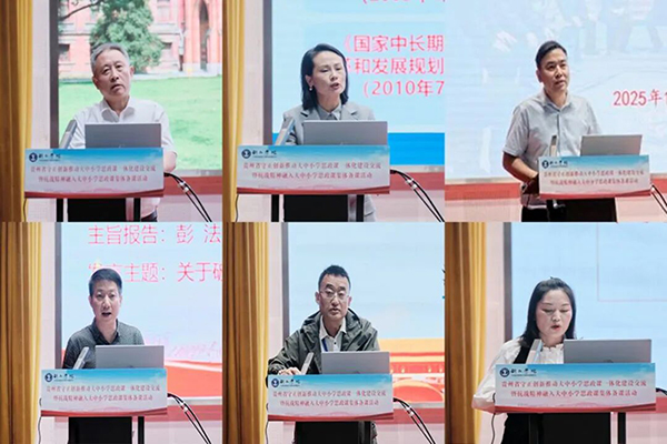 在主旨报告阶段,6位专家作了发言。田芝健教授系统分析了当前大中小学思政课一体化建设面临的八大问题,并提出解决问题的五条路径。蒋红霞教授立足新时代新征程,探讨思政课一体化发展的时代要求。和思鹏教授聚焦政治认同,提出了“一个中心、两轮驱动、三学融合、四型互构、五维实践”一体化建设思路。彭法教授直面教学实践困境,提出破解各学段衔接不畅问题的对策建议。张荣军教授着眼文化育人功能,阐述中华优秀传统文化赋能一体化育人体系的路径。龙金菊深入挖掘抗战精神内涵,分析其在铸牢中华民族共同体意识中的历史作用与时代价值。
