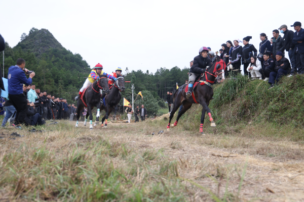 赛道上,裁判员一声令下,骑手扬鞭策马,如箭一样奔向前方,骑手们你追我赶地驰骋在乡土赛道,上演水族独有的速度与激情。观众的助威呐喊声不断,现场高潮迭起、热闹非凡。