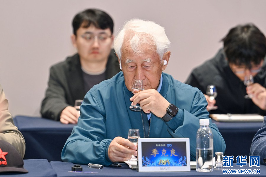 季克良在对比品鉴珍酒新产品与茅台酒。新华网发(主办方供图)