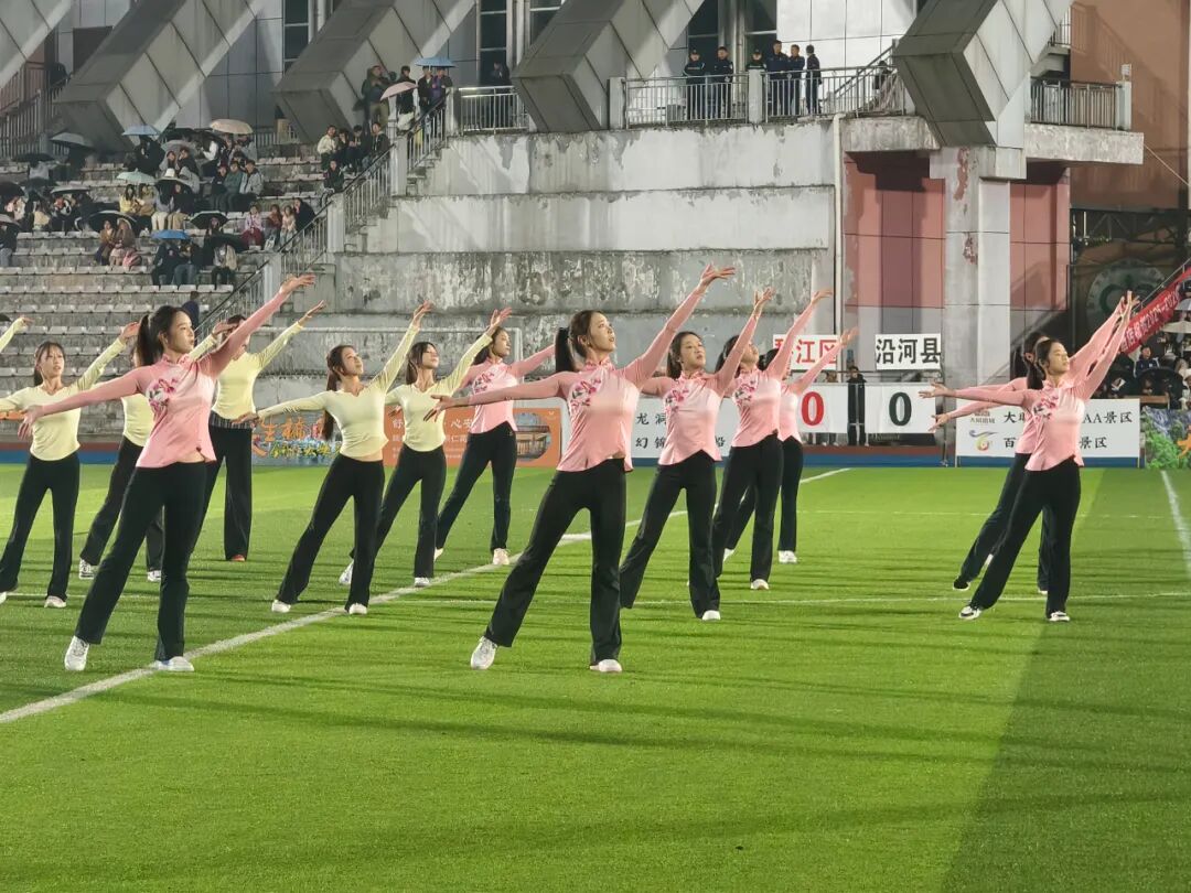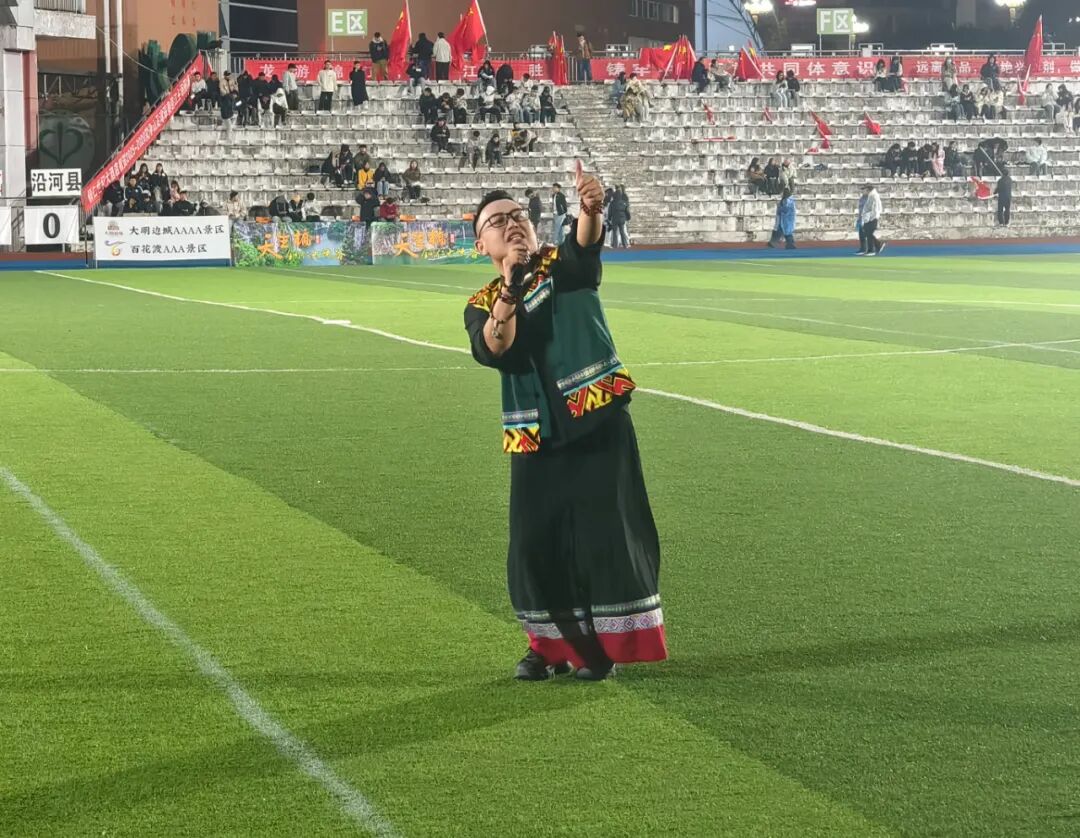 中场休息时间,摩山人登台献唱歌曲《相信自己》,励志的歌词与高亢的嗓音,为队员们注入满满能量;随后,舞蹈《小城有伙新市民》温情登场——舞者身着民族服饰,以充满民族特色的舞姿让紧张的赛事氛围多了份人文温度,让现场观众在激情之余感受民族文化之美。
