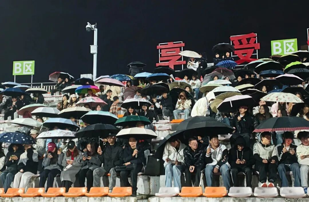 傍晚6点30分,细雨未挡人气,铜仁学院体育场内已人头攒动,赛事预热准时开启。力动乐队率先登场,以经典摇滚《不再犹豫》点燃全场氛围,紧接着《海阔天空》的旋律响起,瞬间将现场变成音乐与热情的海洋。随后,活力四射的舞蹈《一起来》登场,舞者们用动感的舞姿传递着运动的快乐,为即将开赛的足球赛预热升温。