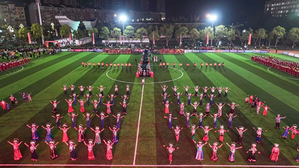 而最“嗨”的,莫过于“蹦苗迪”。当明快的音乐响起,观众跟着节奏晃肩,踏脚、拍手……观众龙如强说,节目设计别具匠心,让观众既能看足球,也能品味到文化的“盛宴”。