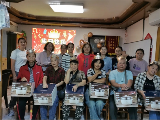 同一天,城基路社区与毓秀路社区也联合开展生日联谊,共有9位失独、伤残长者参与。活动中虽然没有华丽的布置,但真诚的祝福和用心的陪伴让现场充满“不是亲人,胜似亲人”的温暖。