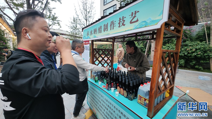 与会嘉宾在衡昌老烧坊街区品尝遵义非遗美食。新华网 卢志佳 摄