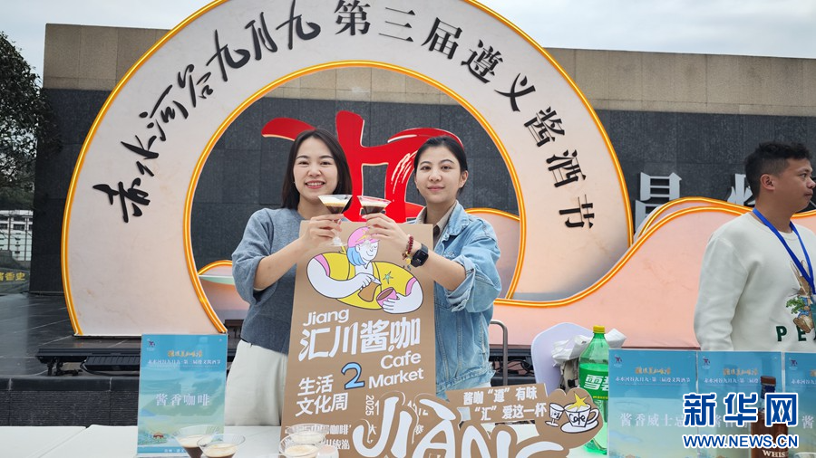 工作人员展示酱香咖啡等新酒饮。新华网 卢志佳 摄