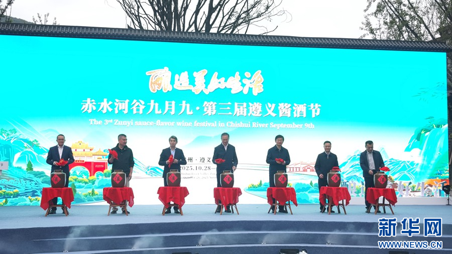 新华网贵阳10月29日电 10月28日,主题为“酿造美好生活”的赤水河谷九月九·第三届遵义酱酒节在仁怀市茅台镇开幕。