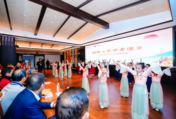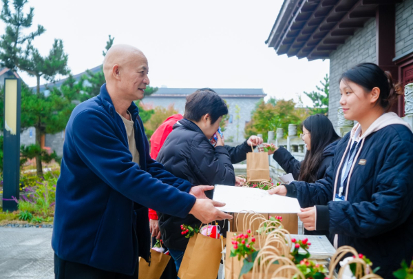 启动仪式后,一场庄重而温馨的敬老礼仪式在文化园内举行。尊老敬老是重阳节的核心内涵,也是中华民族的传统美德。与会领导和嘉宾向现场的老龄代表表达了崇高的敬意和节日的祝福,现场四个家庭的小辈分别为长者们奉上菊花茶、重阳糕。这场仪式不仅是对传统礼节的传承,更是对社会尊老风尚的有力倡导,让在场的每一个人都深切感受到浓浓的敬老情意。