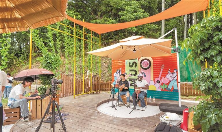 小兰山数字文化产业生态村落里,网红正在直播。余军 摄(影像贵州)