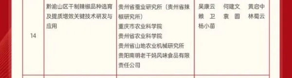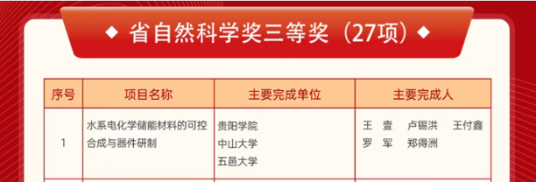 11月4日,贵州省科学技术奖励大会在贵阳隆重举行,在公布的2024年度贵州省科学技术奖授奖项目名单中,贵州双龙航空港经济区3家企事业单位参与的项目从中脱颖而出、荣登榜单。其中,由贵阳学院、中山大学等单位共同完成的“水系电化学储能材料的可控合成与器件研制”,获得省自然科学奖三等奖;由贵阳南明老干妈风味食品有限责任公司、贵州省农业科学院、贵州省蚕业研究所(贵州省辣椒研究所)等单位完成的“黔渝山区干制辣椒品种选育及提质增效关键技术研发与应用”,获得省科学技术进步奖二等奖;由科之杰新材料集团(贵州)有限公司等完成的“绿色低碳机制砂混凝土关键技术及应用”,获得省科学技术进步奖三等奖。