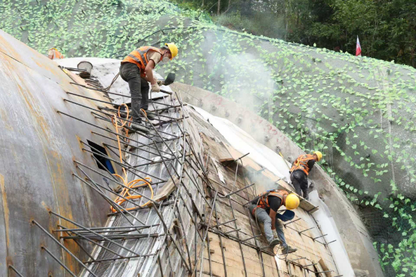 近日,笔者走进惠罗高速交燕隧道施工现场,只见拱形隧道洞口已初现轮廓,周边脚手架整齐搭建,施工人员规范穿戴工装与安全防护装备,分散在隧道顶部及侧壁区域开展焊接、支护等作业,现场井然有序,各项工序紧密衔接。