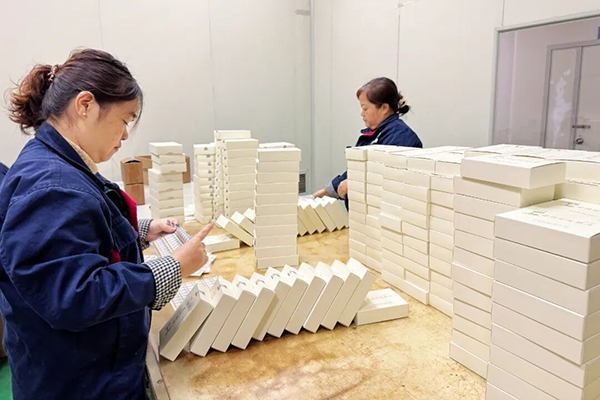 在成品包装区,工作人员们动作娴熟地为产品贴上防伪标识,随后打包、装箱,每个动作一气呵成。与此同时,前期灌装完毕的桶装缬草油,在完成各项指标检验后装车,将发往海外。
