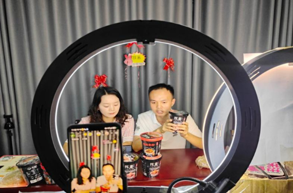 图为零售户线上直播带货当地特色产品。(安娜 摄)