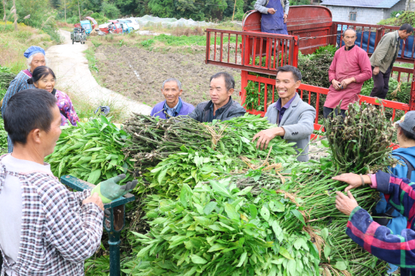 “今天我请了10多个人来帮忙收割、装车,按照目前采收的情况,早上预计能收割1吨左右。”种植户岑远亮看着眼前火热的采收场景,嘴角微微上扬。他说,今年是他种植蓝靛的第四年,从第一年种植2亩,到现在种植20多亩,每年家里的收入都在逐渐增多。