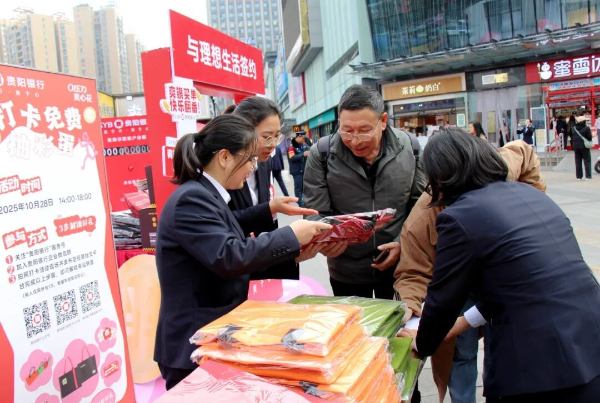 活动精选贵阳悦然时光、筑城广场等核心商圈及地州标志性广场,打造10余场互动展陈。通过“核心打卡点+趣味装置+抽奖福利”的组合设计,将“爽快贷”“爽心分”等核心产品融入市民生活场景,互动体验让金融知识变得通俗易懂,贴心福利让金融服务充满温度。林女士现场抽中“爽快贷”利率优惠券后,立即与产品经理进行还款核算,她直言,“优惠力度超出预期”。一边是展陈现场设置的金融知识、反诈知识问答等环节。一边是走进商场、走访商户,送服务上门。“最近确实有贷款方面的需求,但是在店里忙也没时间去银行,刚好贵阳银行工作人员来店里讲解相关产品,我们就深入了解咨询了。”悦然时光附近的一家商户说。