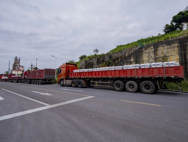 满载成品铝锭排队出厂的车队。贵州日报天眼新闻记者 余军 摄