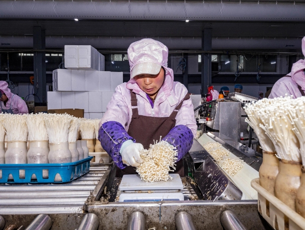 走进威宁雪榕生物科技有限公司,车间内的机器“隆隆”作响,工人们正忙着称重、打包、装箱、运送。“我以前在家务农,现在来公司务工,每个月能挣到4000多元,我准备一直在公司干下去。”张朝秀入职8年了,主要负责公司金针菇的采收,“现在熟练了,做起来也轻松,只是要特别注意采收的时候不能伤着金针菇,影响卖相。”