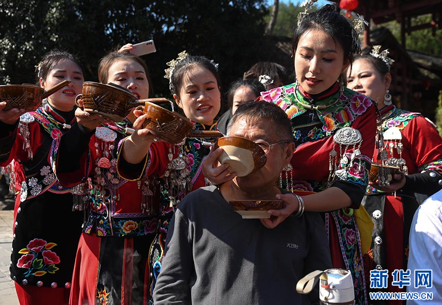 11月15日,苗族同胞在贵州省铜仁市松桃苗族自治县正大镇苗王城景区欢庆苗年。新华网发(谢慧芳 摄)
