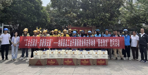 2025年6月17日,纳雍县总工会在县文化广场开展“夏送清凉”慰问活动,为外卖骑手、货车司机及邮政快递等新就业形态劳动者送去防暑降温物资。