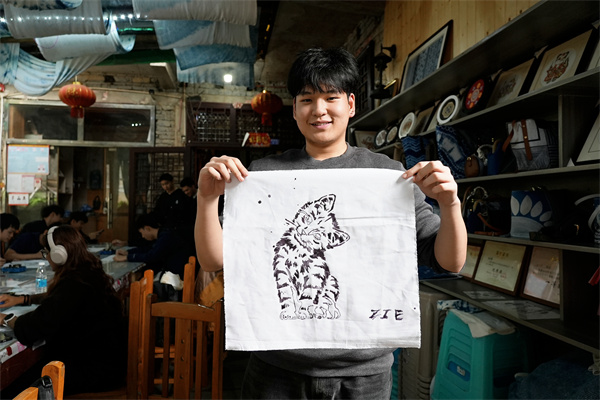 非遗蜡染体验成为本次研学的“爆款项目”。在指导老师的助力下,同学们以蜡为笔、以布为卷,任由想象力驰骋,勾勒出专属创意图案,让古老技艺与青春创意碰撞出别样火花。“我非常喜欢蜡染这种体验,既能发挥创造力,又能亲身感受传统文化,特别有意义。”学生梅景恒兴奋地说,他还强烈推荐亲朋好友前来体验,“既能拓宽视野,也能感受中华文化的博大精深”。学生李茁雅也对蜡染念念不忘,直言“好玩又能发挥创意”,还忍不住夸赞当地美食:“五色糯米饭、土豆饼、土豆丝都超美味!”
