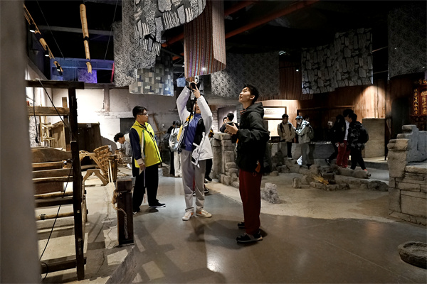 清晨的高荡古寨,石板古巷蜿蜒曲折。在布依族导游的生动讲解中,同学们仔细端详布依传统干栏式建筑的精巧结构,了解防潮抗震的古老智慧;布依文化陈列馆内,精美的服饰、独特的头饰背后,承载着布依族的迁徙历史与文化图腾,让大家充满好奇。
