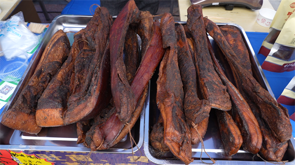 同样人气爆棚的还有贵州众帮顺农业开发有限公司的展位,其生产的腊肉凭借传统工艺制作出紧实肉质、咸香适中的独特风味,赢得了当地群众的青睐,仅活动第一天销售额就突破7万元,成绩十分亮眼。而贵州金瀑生态黑茶有限公司的展位前也捷报频传,公司负责人表示:“刚有两位客人直接订购了50多块黑茶砖,大家对我们的产品认可度很高,这次推介会效果远超预期。”贵州牛来香实业有限公司的展位上,两名工作人员一人忙着介绍产品渊源与特色,一人专注于打包发货,即便分工明确,仍难敌市民的采购热情,现场始终一片忙碌景象。