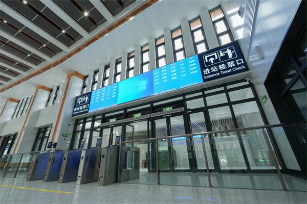 据保田站站长张雄介绍,保田站站房占地2993㎡,是个站场规模为2台4线的小站。“在设计上,对外立面、候车厅、连廊等部位进行局部深化,突出了保田站小而精的特色。”