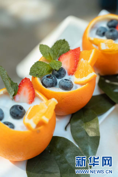 用脐橙制作的美食。新华网发(陈伟红摄)