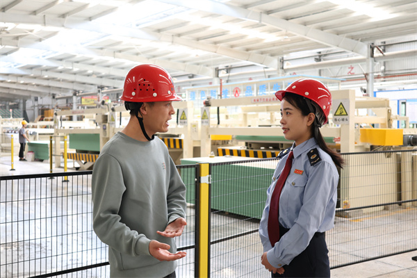 金沙县税务局青年税务干部走访贵州皇冠新型建材有限公司,了解企业生产经营情况。(朱泫粼 摄)