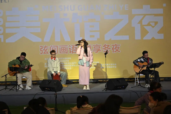 从高质量的展览展厅、艺术表演的“静态”观看,到沉浸式体验感受的美食集市围炉煮茶、多彩非遗手工制作的动态融入;从趣味性知识普及活动的举行,到从公共美育教育从节日到日常的延伸拓展;从人气爆棚的“落日音乐会”“美食纯咖”等丰富场景打造,到游戏联盟、互动影像机等互动性内容增加。三年多来,“美术馆之夜”不断的推陈出新,引得越来越多群众前来打卡体验,既精准把握了公众公共文化需求与高雅艺术审美之间的结合点,又巧妙地促进了传统文化的创造性转化和创新性发展,增强了参与者、体验者、互动者的文化认同、文化自信和自豪感。