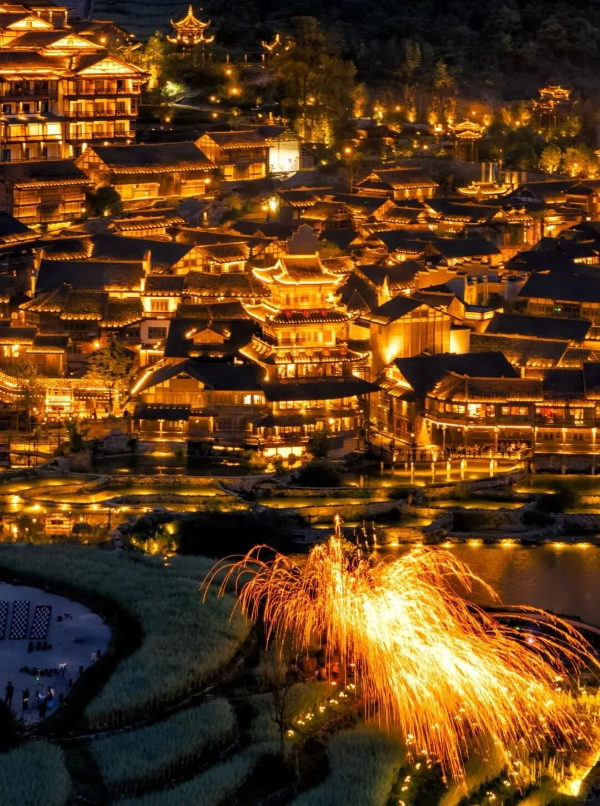 待到夜幕降临,乌江寨的冬日狂欢才正式开场。