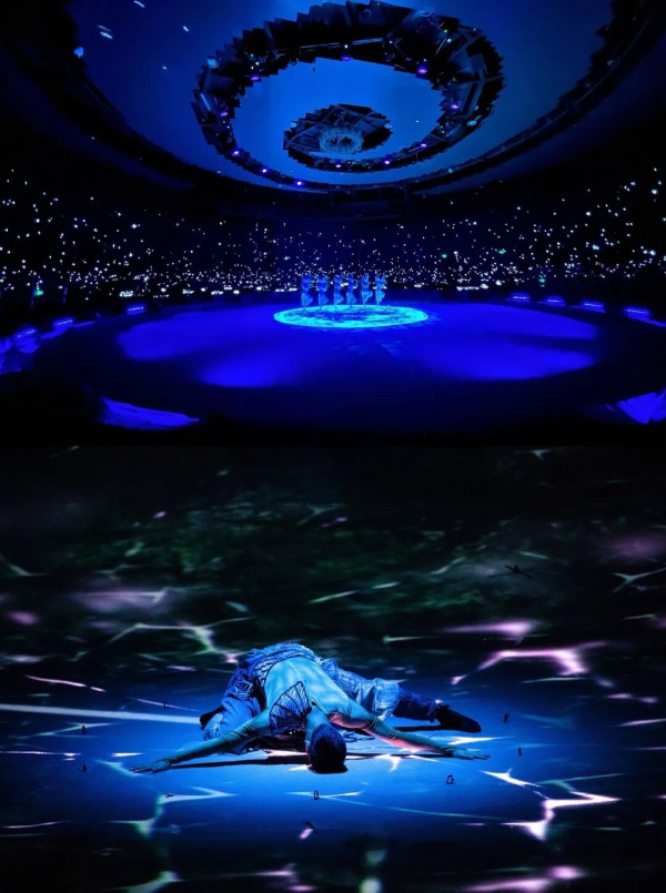 远处无人机缓缓升起,在夜幕中排列闪烁构成一片璀璨的“星空”,此夜不追月,就在这里赴约一场宇宙的终极浪漫……