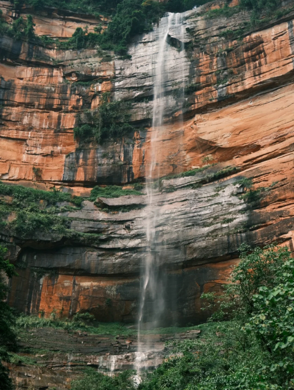 赤水大瀑布无疑是这里最为壮丽的景观,素练般的瀑流从丹霞绝壁轰然坠落,站在观景台,张开双臂,感受水雾拍打在身上的奇妙感觉。