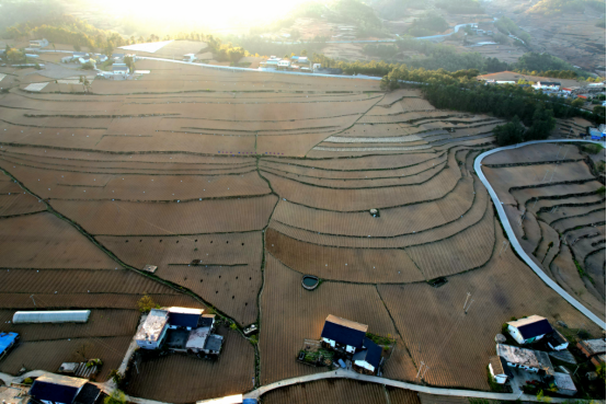 盛夏时节,透过无人机镜头俯瞰威宁自治县么站镇平原社区,一片片田地成方成块、开阔平整,一条宽敞便利的机耕道和水渠贯穿其中,风吹烟浪连绵起伏,百里烟海如梦如幻。