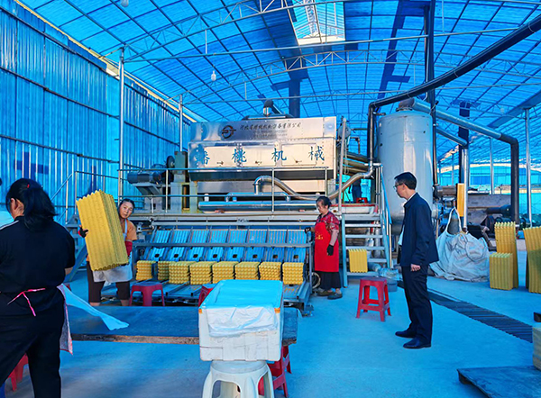 不仅如此,青山村还以蛋鸡养殖为支柱核心,从单一养殖业态逐步拓展,形成生猪养殖、蛋托加工、肥料加工等多元产业板块,构建起“两区一园”产业体系。通过投入500余万元引进大型自动化生产设备,升级改造集体经济蛋鸡场、蛋托加工厂、有机肥加工厂、生猪代养场,实现种养产业齐头并进、提档升级。