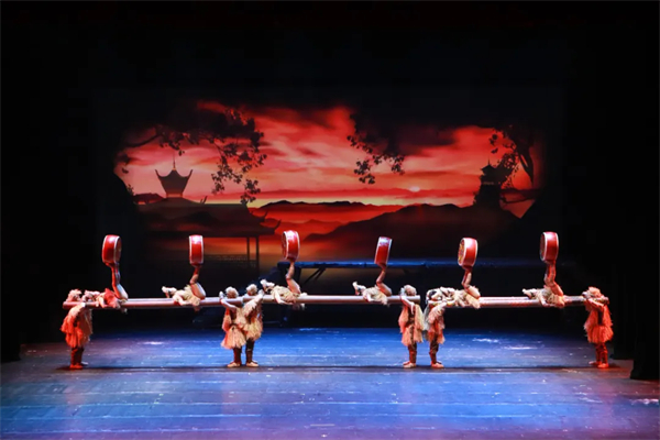全剧共分为七幕,生动讲述了西部少数民族同胞在党的领导下开山修路、决战脱贫攻坚的壮阔历程。舞台上,“空翻”“蹬鼓”“顶人”“弹球”等高难度杂技绝活轮番上演,演员们精准利落的动作令观众目不暇接;同时,剧目还巧妙融入了苗族银饰、侗族舞蹈、土家风俗等贵州独特的民族文化元素,让杂技艺术与地域特色相得益彰,绽放出独特的文化魅力。