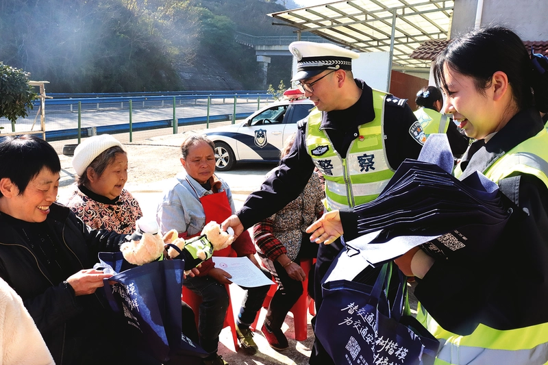 遵义交警采用警企联动“坝坝会”的形式,向村民宣讲行人违法进入高速公路的危害性,结合真实案例深入浅出地讲解冬季高速公路行车安全知识;