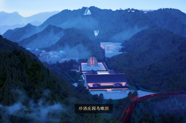 发言的亮点是珍酒正在建设的世界级酒庄。陈国华透露,庄园建设的初心源于“苍山如海,残阳如血”的诗词意境。“为让更多人欣赏到贵州的壮美诗境,我们以‘诗’为魂,以‘酒’为体,聘请国内外顶级专家团队,耗时五年完成方案设计。”他展示了多张效果图并介绍,这座庄园将提供美食、美酒、山水、人文、休旅一体的全新体验:130米长的大门如徐徐展开的画卷;非遗博物馆为标志性建筑;山顶云顶餐厅和书屋设计独具匠心,前者让每个座位都能欣赏苍山或云海美景,后者灵感源自梵净山蘑菇石;温泉民宿每间客房均配泡池,温泉日出水量超1500吨且富含硫化氢、偏硅酸等有益物质;主楼则由乌克兰设计师精心打造。