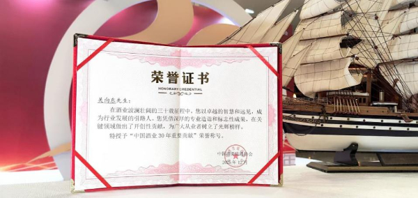 △吴向东被授予“中国酒业30年重要贡献”荣誉称号