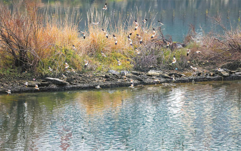 图为玉屏侗族自治县阳河国家湿地公园内,灰头麦鸡或在岸边停歇觅食。