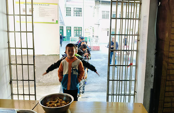 鸡爪村小学全校仅有17名学生,是一所乡村小学。过去,不少孩子需要走很远山路回家吃饭,或自带冷饭冷菜。自从义务教育乡村学校营养午餐计划实施以来,这一切发生了根本变化。