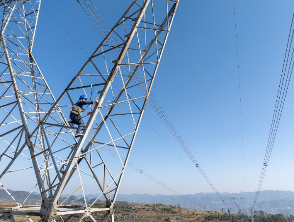 南方电网贵州六盘水供电局工作人员对500千伏枝高甲线开展集中检修。王飞 摄