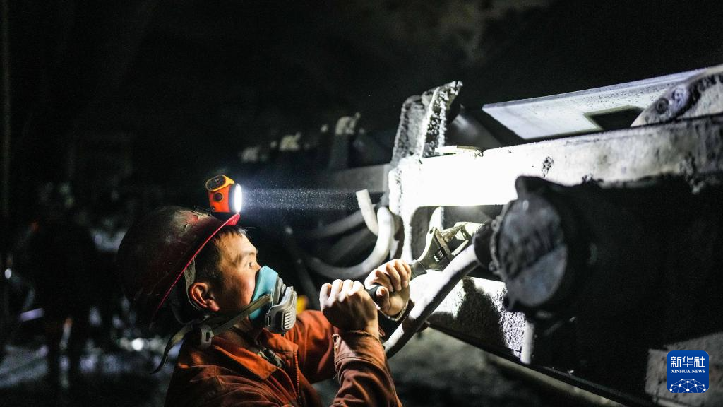 12月10日,工人在赫章县猪拱塘铅锌矿区井巷进行施工。新华社记者 陶亮 摄