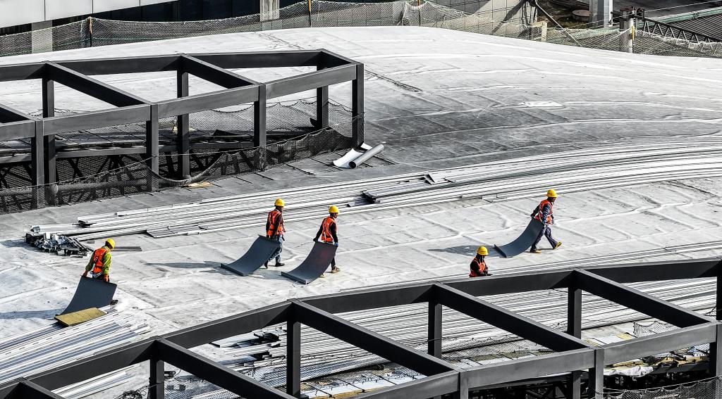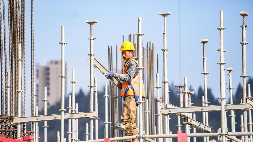 12月11日,工人在六盘水站站房及站场改造工程施工现场施工。
